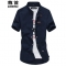 尊首 2015夏款男装 男士韩版修身短袖衬衫 商务休闲衬衣男 免烫衬衫男潮 CS013藏青 L